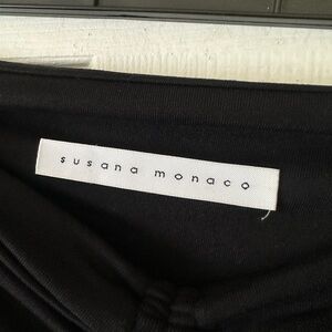 Susana Monaco Black midi skirt with ruched front and front slit, size xs
