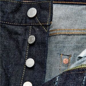 Stylish straight fit jeans by Momotaro. Deep indigo color. Perfect for versatile wear.