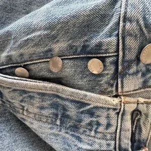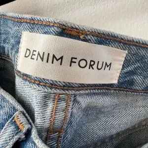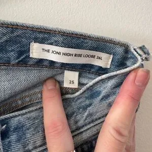 Stylish light blue loose high rise button fly jeans by Denim Forum. Ideal for a relaxed silhouette. Roll up cuffs for a slouchy look. Tag says 26 L, but there is another small tag that says 25, so not sure which is the size. The waist measures 14 inches across, rise 11, inseam 26. Perfect condition.