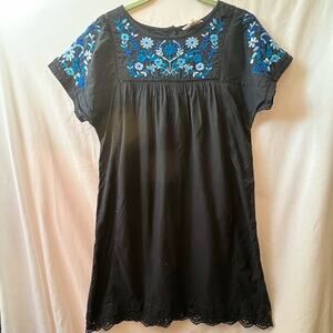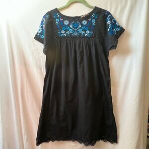 Rebecca Taylor Black/Blue Garden Floral Embroidered Short Sleeve Dress Sz 6