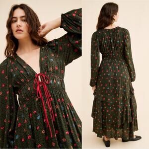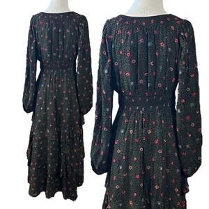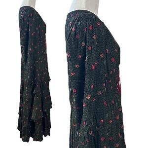 Free People Bohemian Gypsy Tiered Ruffle Maxi Dress Small Witchy Plunge Fall