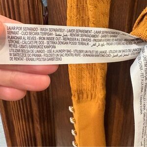 Zara $45 Mustard Yellow Textured Knit Sweater w/Faux Pearl Buttons M P2P 15.5-18
