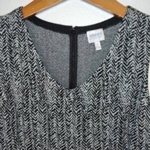 Armani Collezioni 4 Sheath Dress Black Gray Herringbone Knit Stretch Sleeveless