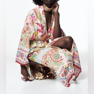 ZARA Belted Printed Open Front Kimono