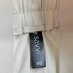 The pants are available in size medium, with a waist size of 30 inches and an inseam of 25.5 inches. The rise is 11.5". The regular fit pants are tailored to provide comfort and flexibility during any activity. The brand, Savvi, is known for its high-quality activewear, and these pants are no exception. Get your hands on these joggers and step up your fitness game!