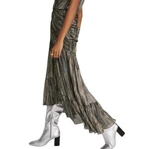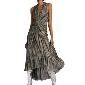 MISA Los Angeles MAXI DRESS METALLIC AVA PLUNGING TWIST RUCHED FLOUNCE HEM SZ XL