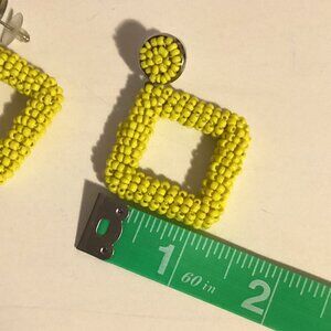 Women's Bohemian Seed Bead Square Bold Colorful Yellow Earrings Jewelry Retro 1960's - pre-owned in good condition - earrings for pierced ears - made from small yellow beads - square shaped earring - see photos for more details Tags: women's jewelry, women's accessories, parties, bold, colorful square earrings, retro, 1960's, fun Bundle and save! You are welcome to create a bundle of two or more items and save 25% at checkout. Or spend $100 and get FREE shipping.