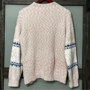 Fair Isle Mock Neck Cozy Pink, White & Blue Fuzzy Sweater