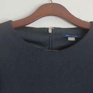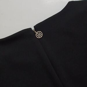 This sophisticated black sheath dress by Tommy Hilfiger is perfect for work or casual outings. It features elegant bell sleeves and a classic crew neck, offering a timeless and polished look.