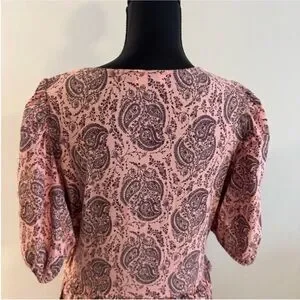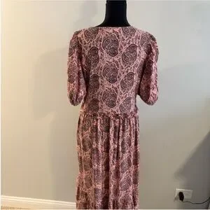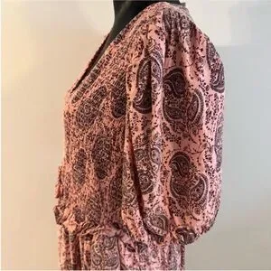 Stylish midi dress with a paisley pattern. Features a flattering V-neck and puff sleeves. Ideal for versatile wear. The dress is in good used condition. Size L.