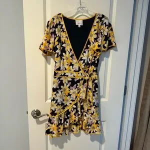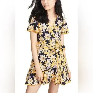 Cinq á Sept Floral Cameron Yellow & White Wrap Dress, size 4. In great condition!