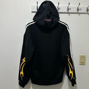 Adidas Black Hoodie with Spider and Flame Graphics, Size Men’s Small