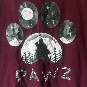 Maroon long sleeve tee. Features paw print and nature design. Comfortable and stylish.