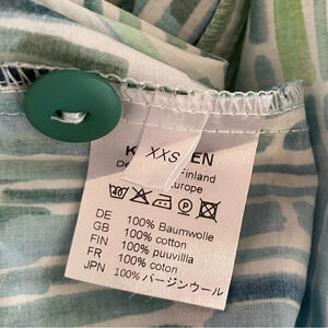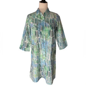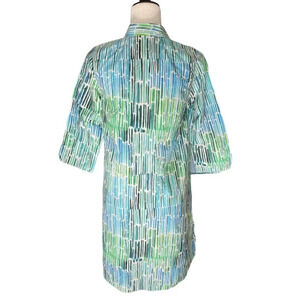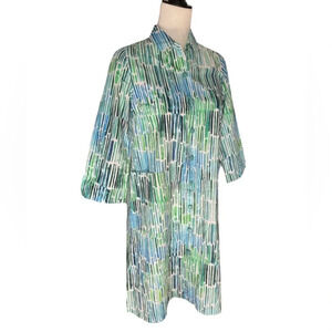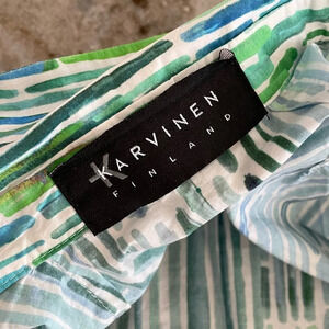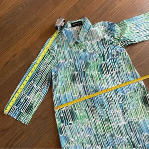 KARVINEN FINLAND button down shirt tunic mini dress green blue white abstract