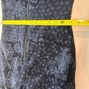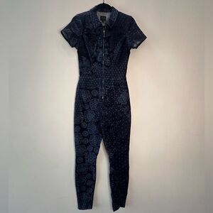 Denim paisley print navy blue jumpsuit with a stylish zip-up front. Perfect for any occasion. Fitted pantsuit. Size small. Worn once. Hem down the center for a flattering look. Pockets in the front. Short sleeve. Collar. Don’t forget to bundle and save. Always open to reasonable offers on any of my listings.