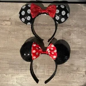 Disney World Minnie Mouse Ears Bow Headbands 2PCS Classic Sequin Disneyland