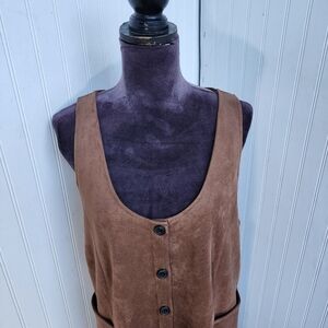 Loft Faux Suede Button Down Deep-Neck Pocket Brown Soft Vest Dress Women's Sz M