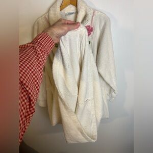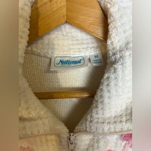 National Vintage Towel Robe Floral Embroidered Mid zip Size M Chic 90s Romantic