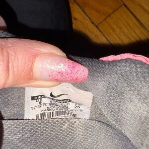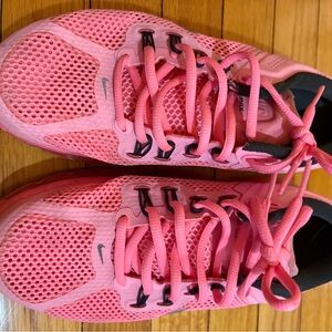 Vibrant pink Nike shoes with gray accents. Stylish and comfortable for active wear.