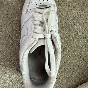 Sleek white Nike Air Force 1 with classic silhouette. Perforated toe for breathability. Durable rubber sole.