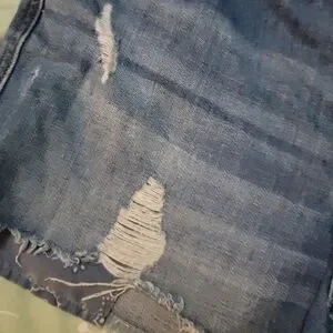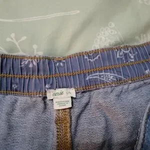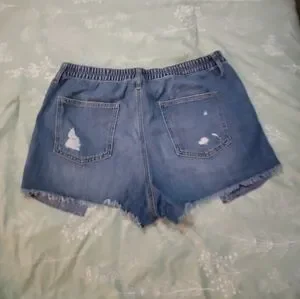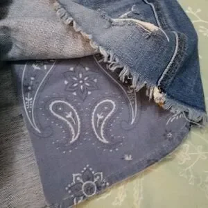 These Aerie jean shorts in a vibrant blue feature a trendy distressed look with intentional rips and a frayed hem, bandana pockets theme, perfect for a casual, laid-back style. euc size Women's Large