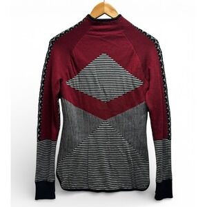 Smartwool Womens Small Black/White/Pink Striped Herringbone Wool Full Zip Jacket