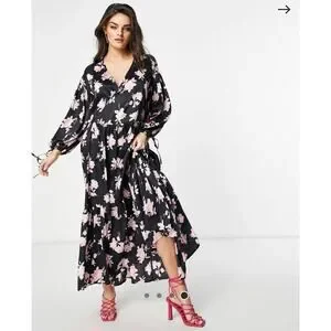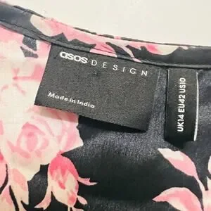 ASOS Satin Floral Oversized Dress Size 10 Black Multicolored