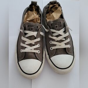Classic Converse All Star sneakers in gray. Features white laces and toe cap.