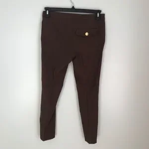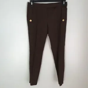 New Vertigo Paris Brown Creased Career Pants Gold Tone Buttons Zip Leg