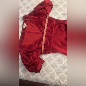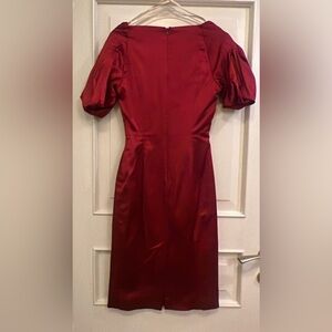Karen Millen Red Cocktail Dress with Sweetheart Neckline and Puff Sleeves party