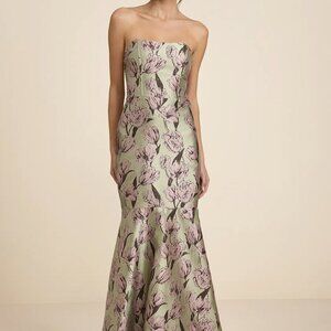 NWT Lulus Gowning Around Sage Floral Jacquard Strapless Maxi Dress