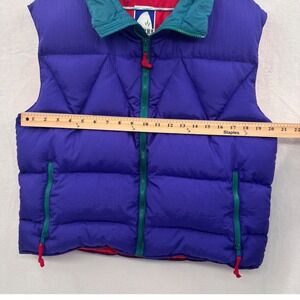 Sierra Designs Goose Down Vest in a size Medium. Vintage 1990's, Purple, Teal and Red. Excellent used condition. No stains or smells. Just cleaned and ready for winter adventures! Hits at waist, see measurements in photos to ensure fit.