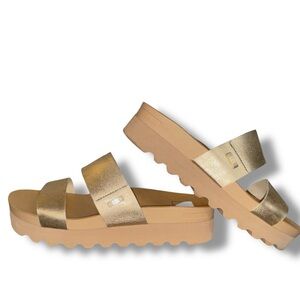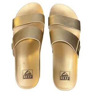 Reef Cushion Vista Hi Womens Platform Slide Sandals Metallic Golden Hour Size 8