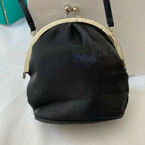 La Regale Vintage Brushed Satin Purse Evening Bag Clutch Black Coin Lipstick holder Cute