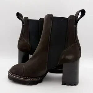 See by Chloe Womens Mallory Ankle Boot EU 37.5 US 7.5 Grey Calf Suede NIB
