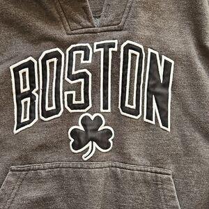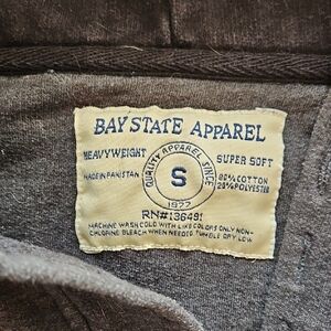 Dark gray hoodie by Bay State Apparel. Super soft and heavyweight. Boston embroidery grapic, unisex size small. pullover style with pocket on front