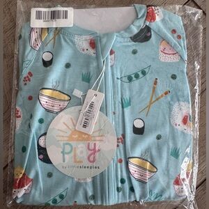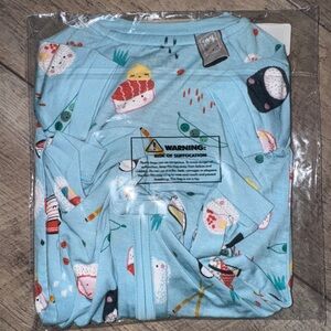 Charming kids sleep and play with sushi design. Soft and cozy for bedtime or play. Single zipper original play style. Retired print. Baby unisex 3-6 with lots of stretch