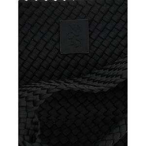 Hand-woven neoprene St. Barths Medium shopping, double fixed handle, tone-on-tone logo patch on the side, and removable matching clutch.