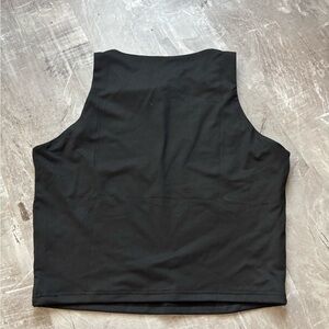 Black crop top. Sleeveless design. Perfect for casual wear.