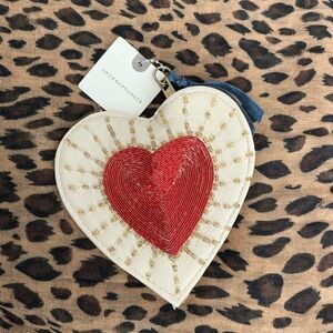 Anthropologie Cream and Red Coin Purse