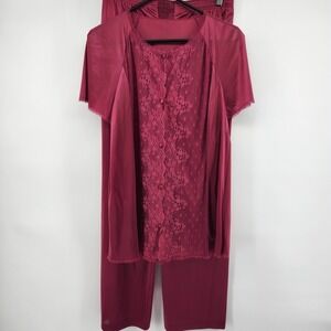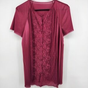 VTG Women's Burgundy Lace Trim Short Sleeve Button Down Pajama Set Classy Sexy