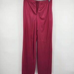 A women's burgundy pajama set crafted for comfort and style. This elegant two-piece ensemble features a short-sleeved top with delicate lace detailing and matching relaxed-fit pants.
