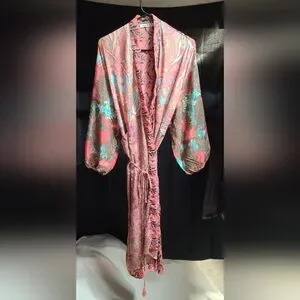 Elegant paisley robe with a tie waist. Features vibrant patterns and flowing sleeves. Perfect for lounging.