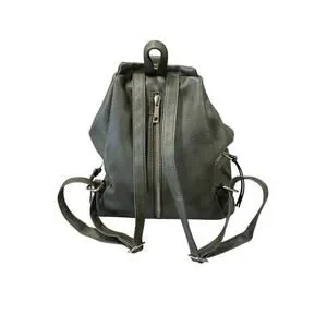The Sondra Roberts Squared Pebbled Green Backpack Bag Purse is a stylish and versatile accessory for women on the go. Made from vegan leather with a pebbled finish, this medium-sized bag features a trapezoid shape and a zip closure for easy access. The green exterior and gold hardware give it a classic and designer look, perfect for travel, parties, or casual outings. With adjustable backpack straps and outer pockets, this bag offers both fashion and functionality. The timeless design and 90s theme make it a must-have for any woman's wardrobe.