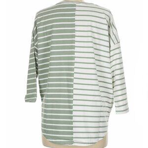 Vineyard Vines women’s pullover sweater shirt in creamy white with sage green stripes, size XS. Features a flattering boat neckline, 3/4 sleeves, and an easy oversized fit for relaxed comfort. Made from a soft, stretchy blend of 58% cotton, 38% modal, and 4% spandex—perfect for transitional seasons. Versatile enough to style with jeans, leggings, or athleisure for a polished casual look. No flaws, only very minor signs of wear. Ships same or next business day.