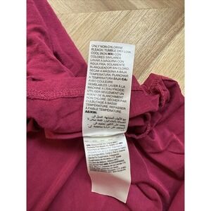 The Soma Nightshirt in size small is a comfortable and stylish women's sleepwear piece in a magenta color. Made from a soft rayon/spandex blend fabric with a lace trim accent, this 3/4 sleeve gown features a v-neckline for a classic look. The lightweight material makes it suitable for all seasons, and being machine washable ensures easy care. Perfect for lounging at home in style.
