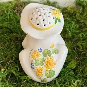VINTAGE AVON 1980s "Flirtatious Frog" ceramic pomander or potpourri holder.