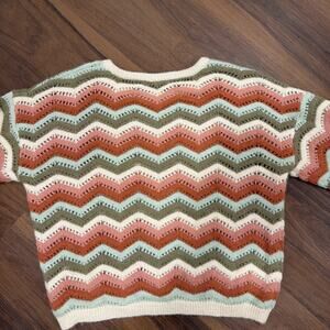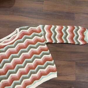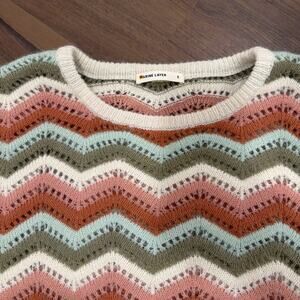 Marine Layer Ruby Sweater in Rainbow Chevron S Pointelle knit alpaca wool