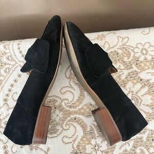 Chic black suede loafers with a stylish bow. Ideal for versatile wear. Good condition. Bundle for 20% off discounts.