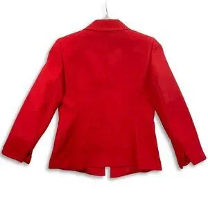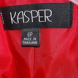 Kasper Blazer Women 6P Red Open Front Lined Shoulder Pads Preppy Office Holiday